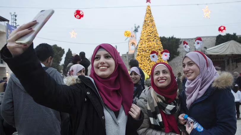 But holidays are not different because they feel endless — rather, they feel endless because of the myriad of sects and religions represented, and their shared, public expression. It doesn’t matter if you are Muslim, Catholic, Armenian Orthodox, or none of the above — everyone in the city comes to see the Christmas tree lit up and take selfies in front of it. Everyone marvels at the Ramadan decorations scattered throughout town and lines up to purchase katayef from their local vendor. Everyone is happy to see photos of their neighbors’ beautiful, smiling faces in the Al Aqsa compound.